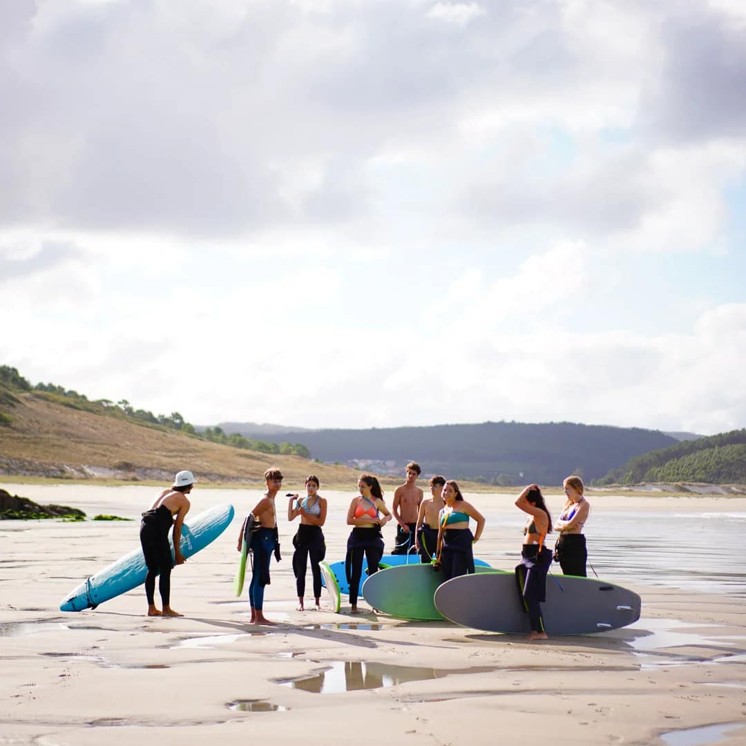 - Clases de surf diarias en playa de Nemiña con monitores titulados.